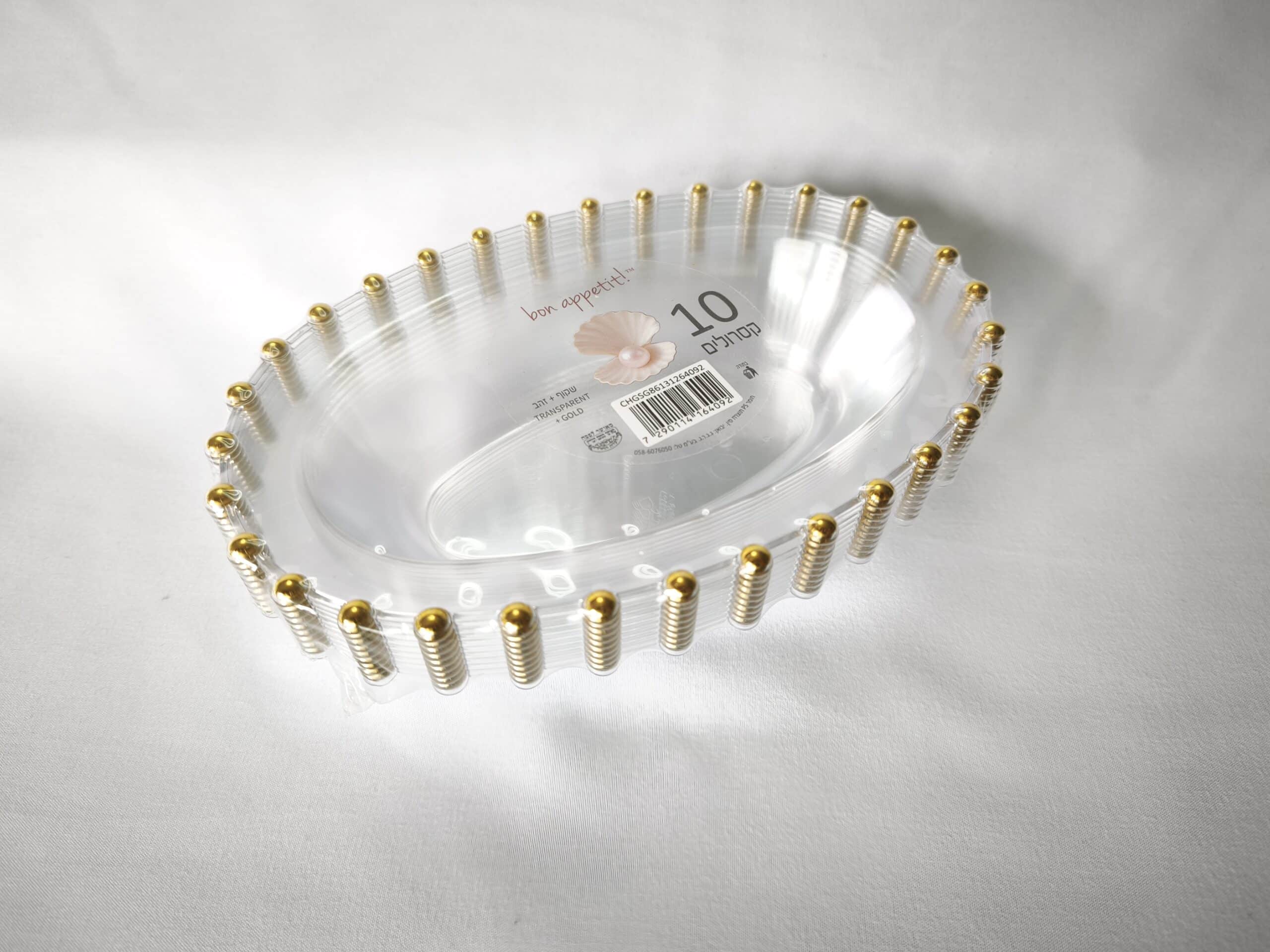 אובלי פנינה שקוף זהב 10 יח